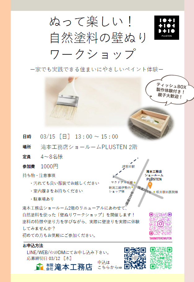 『ぬって楽しい!自然塗料の壁ぬりワークショップ』を開催いたします!